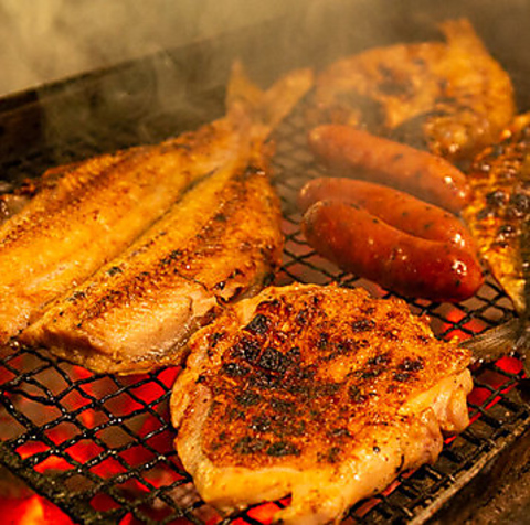 炭火で一気に焼き上げる食材は、外はカリッと中はジューシーに美味さが詰まった上質なご馳走です!季節の野菜も炭火で焼き上げる事で野菜そのものの甘味を引き出します。