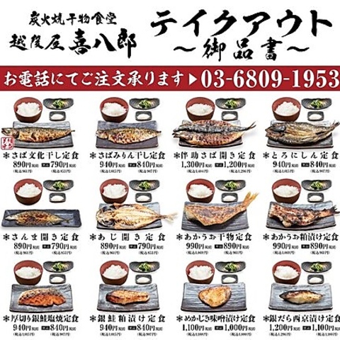 越後屋自慢の定食は数多くのお客様よりご好評いただいております。ぜひお家でもお召し上がりください!当店は巨大な炭火で焼き上げる炭火焼き専門店です!巨大な炭火で焼き上げる食材は、外はカリッと中はジューシーに美味さが詰まった最高のご馳走です!季節の素材も炭火で焼き上げる事で素材そのものの旨味を引き出します。