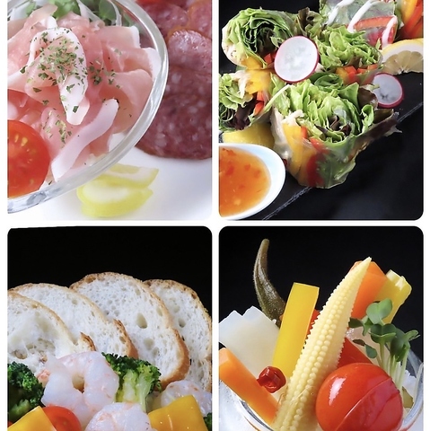 コースだけではなく、単品メニューも豊富に取り揃えています◎手軽につまめるおつまみから、がっつりステーキまで、幅広いメニューが自慢です♪中でも、香ばしいオリーブオイルが絶妙に絡み、ワインとの相性が抜群のアヒージョや、ボリューム感がありながらも軽やかで、ヘルシー志向の方にも嬉しい鶏むね肉の生春巻きがオススメです!