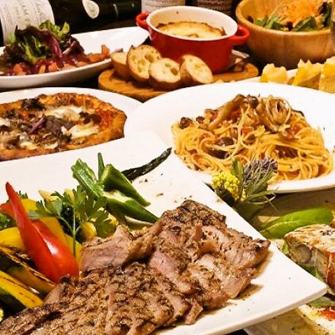 スペイン産マンガリッツァ豚のグリルやアヒージョ、自家製マルゲリータなどを使用した人気のコースです。お料理のみ3500円(事前予約で3300円!)、(+1.800円~2,300円)で飲み放題もOK♪飲み放題希望の場合、2時間☆誕生日/記念日利用の場合もクーポン併用でメッセージ付きパンケーキをプレゼント!!当日17時までのご予約で3300円!