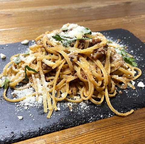 じっくり煮込んだお肉の旨みがギュッと詰まったソースを、もちもち食感のパスタにたっぷり絡めました。仕上げにふんわりチーズをオン!シンプルだけど、ひと口食べれば笑顔になる定番の味です。ランチにもディナーにもぴったり♪