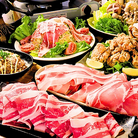 《牛も豚も食べ放題◎》120分食べ飲み放題付の牛&豚しゃぶしゃぶ宴会コースが4500円(税込)!コースなので食べ飲み放題だけでなく、新鮮なサラダから始まり、ジューシーなからあげ、旨みたっぷりのキムチーズチャーハン、最後はデザートもご用意いたします♪