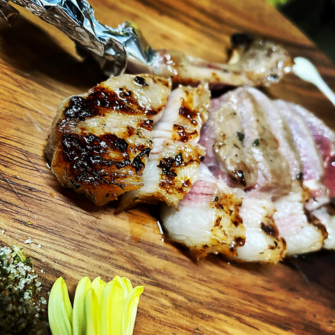 合鴨ロースを特製の地に12時間漬け込み、お店でサクラやリンゴチップで燻り、風味よく仕上げました。全ての【コース】に燻製料理が入っております。掲載以外にも、週替わり燻製ございます。