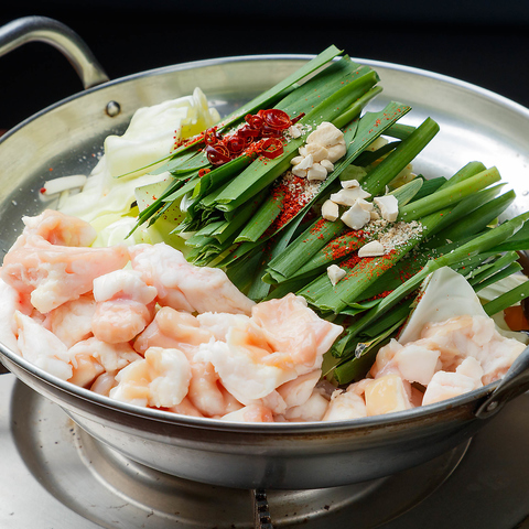 本場九州直送の具材を使った出汁に、国産の新鮮な和牛のもつのみを使用したもつ鍋は絶品!上品な出汁とぷりっぷりのモツをご堪能ください。