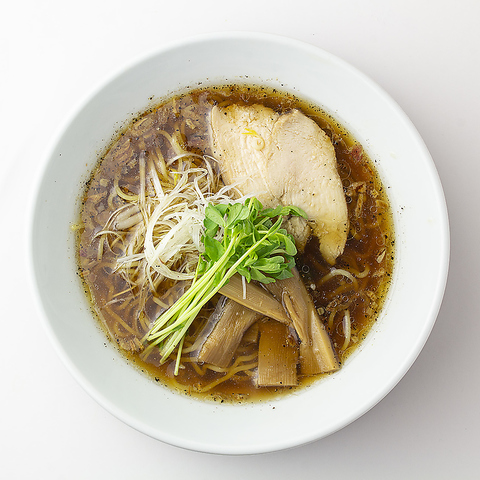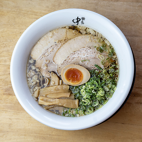 香味野菜と鶏ガラにあごダシを加えた濃厚スープ。しっとり鶏チャーシューと共に。