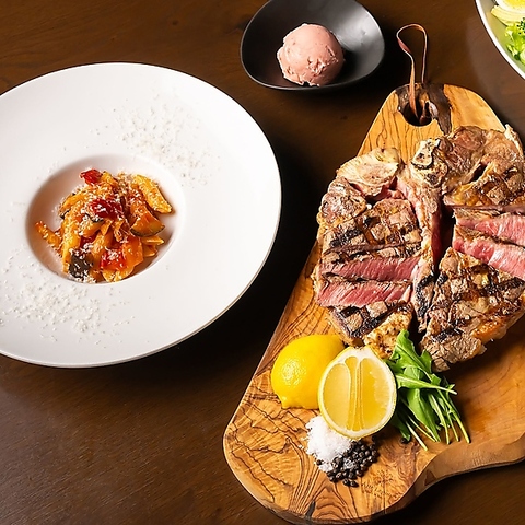 岡山県産のピーチポークや奈義和牛。神戸牛や特大骨付きステーキと自家製の生パスタ…気取らないお料理とワインがよく合います。