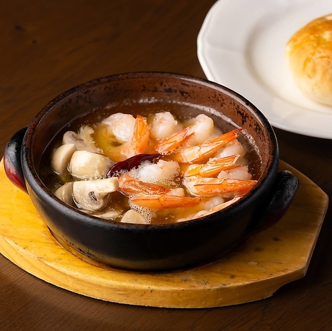 【アヒージョの基本を極めた一皿☆】海老の甘みとマッシュルームのまろやかさが溶け出した、その名の通り贅沢なオイルと、バケットが見事なハーモニーを奏でます♪旨味が凝縮したオイルを最後の一滴まで余すことなくお楽しみいただけます☆料理の王道を極めた一品を存分にご堪能ください!!