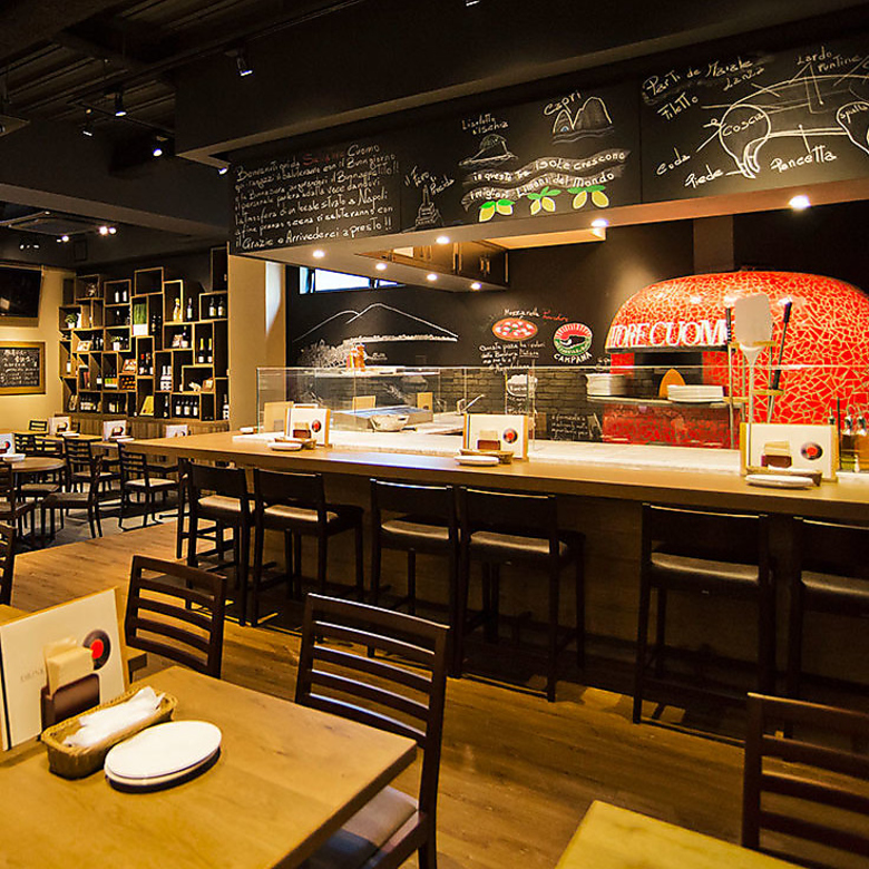 “buona sera(ボナセーラ)!!” (イタリア語でこんばんわ)という元気なスタッフの声でお出迎え♪広々とした店内はウッド調で、ダウンライトが落ち着く大人空間。トレードマークの赤い薪窯で焼き上げたピッツァの香りが食欲をそそる♪ドリンクの種類も町田で随一の品揃えです!!ぜひお立ち寄りください!!