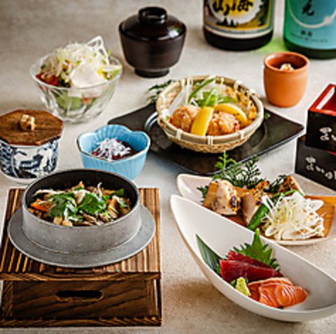 自慢の釜飯を取り入れ、たっぷり堪能していただくコース。飲み放題は+1000円でプレミアム飲み放題にグレードアップOK
