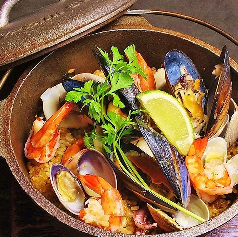 〈浅利・イカ・海老 etc.〉魚介の旨みがギュッと凝縮。彩りも豊かで目で舌で楽しめる逸品です。ボリューム満点ですので、友人とシェアしてお楽しみください。