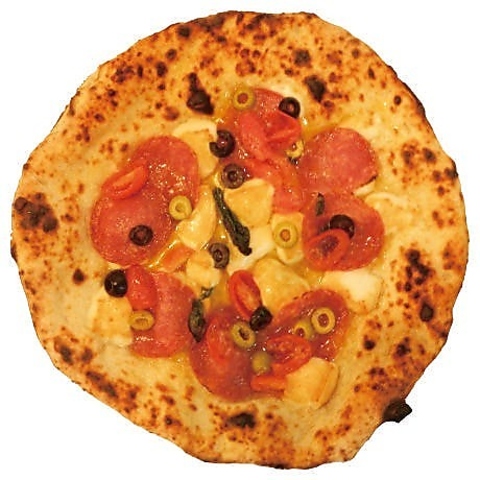 トマトソース・燻製モッツァレラ・オニオンスライス・ピーマン・ンドゥイヤ・辛口サルシッチャ・パルミジャーノ