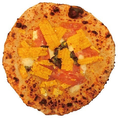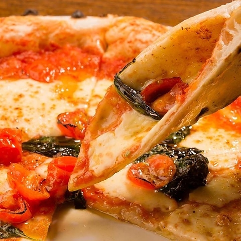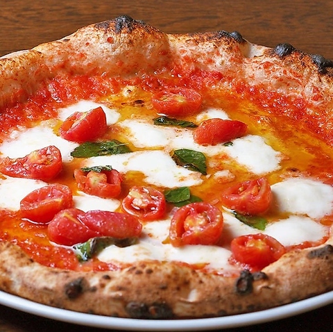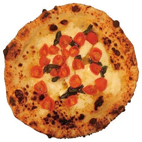 トマトソース・水牛モッツァレラ・バジル・パルミジャーノ:水牛の牛乳から作ったマルゲリータを使用しています。水牛特有の食感、弾力、ミルキーさをお楽しみください。