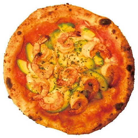 トマトソース・モッツァレラ・アボカド・エビ・ニンニク・バターソース・パルミジャーノ