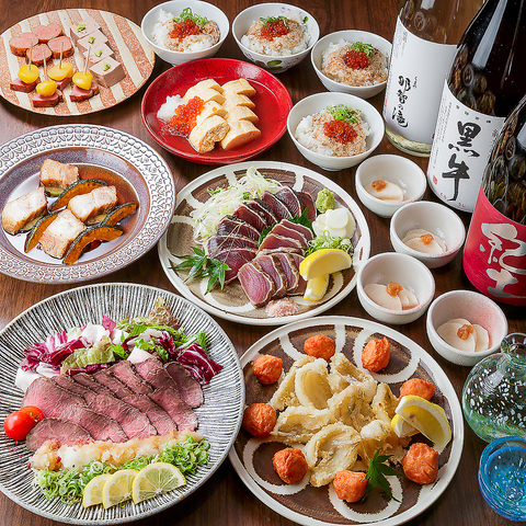 名物!!カツオの藁焼き♪かつおの藁焼きは、炙ると同時に煙で燻されるので香ばしい香りが広がります!ぜひご賞味ください!ちょっと珍しい逸品まで幅広くご用意しております!各種ご宴会・飲み会・女子会は勿論のことデートにもおすすめです♪