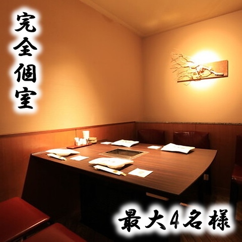 | 個室 | 4名様×7 | 4名様までご利用可能な個室席。接待や会食、デートなど様々なシーンにご利用ください。 |