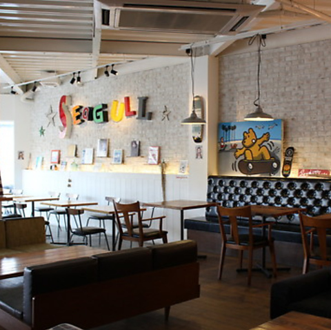 ゆったりできる人気のソファー席、オシャレなカウンターと様々なシーンでご利用いただけるお席をご用意しております。サーフスタイルな家具や細かなインテリアも必見。どのお席でも、思わず写真が撮りたくなる素敵な空間です◎貸切もできますので、お気軽にご相談ください。
