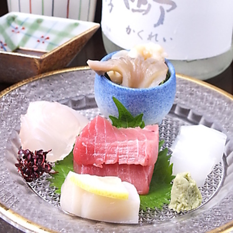 豊洲や船橋の市場へ毎朝出向き、厳しく目利きされた旬鮮魚。いつでも旬で新鮮なお刺身をご提供しております