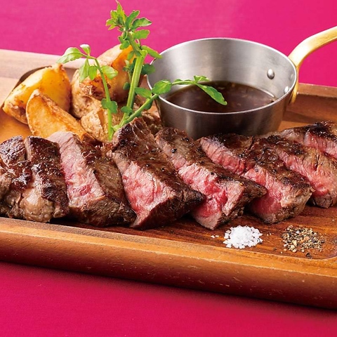 豪州産アンガス牛(グレインフェッド)のサーロイン約200グラムを使用。熱々の鉄板に旨み溢れる肉汁が香ばしい逸品!