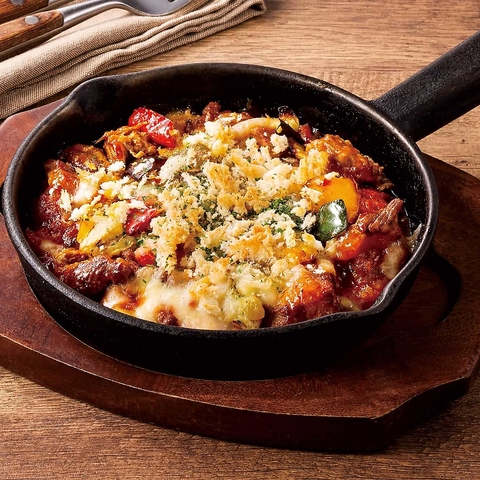 牛すじ煮込みにパン粉とチーズをかけて焼き上げました。
