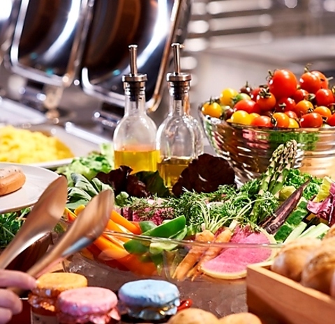 当日選べるメインとサラダやパン、ソフトドリンクをビュッフェスタイルでお楽しみいただく人気のランチです