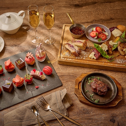 【肉×アフタヌーンティー】和牛等肉3種とデザート+ドリンクフリー