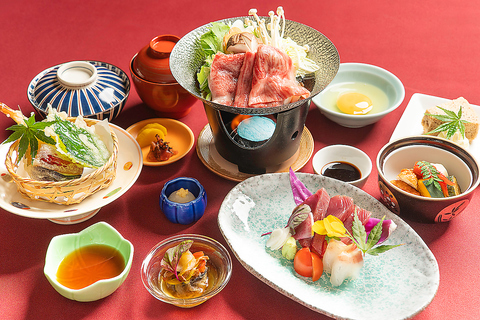 ランチ限定 セリーズ御膳 国産牛すき焼きやお造り、天婦羅等、豪華なメニューです。