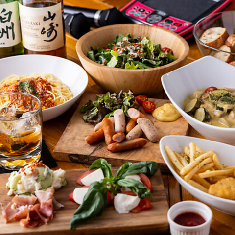 恵比寿駅徒歩5分♪大人の隠れ家バー♪貸切は6名~個室をご用意!女子会・合コンなど様々なシーンにお使い頂けます。※カラオケもご用意しており上記金額に含まれております。1,ICHIICHI 特製サラダ 2,前菜盛り合わせ3,チョリソーorフライドポテト 4,鶏もも肉のクリーム煮 5,ICHIICHI 特製パスタ 6,バニラアイスクリーム