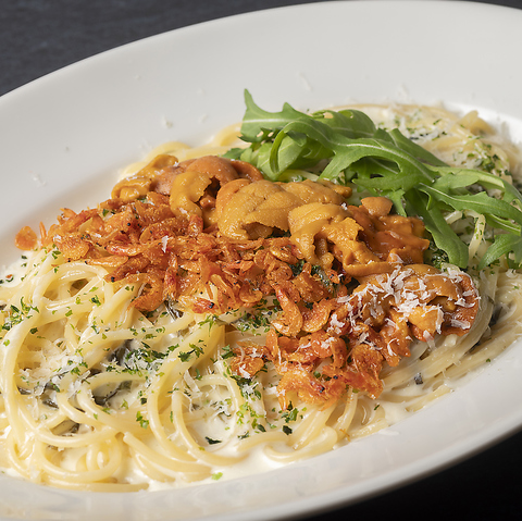 生雲丹と生海苔をふんだんに使用した当店オリジナルのクリームパスタ