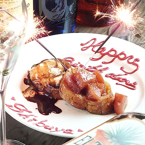 お誕生日会、送別会等、主役を囲う宴には、パチパチ花火付デザートプレートを進呈!ご予約の際にご相談を♪