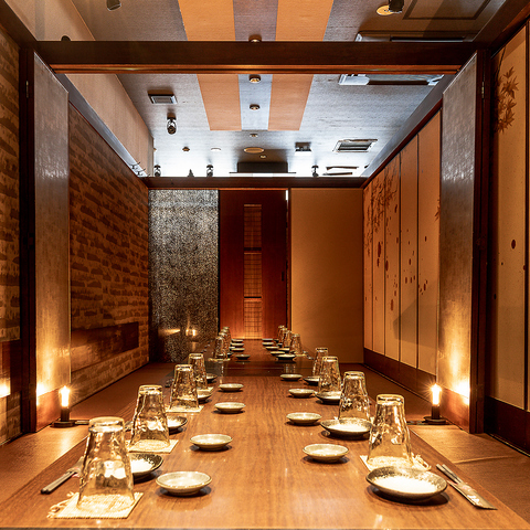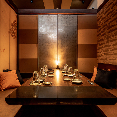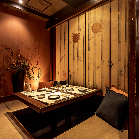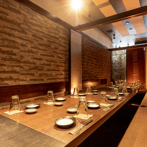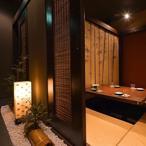 【全席個室】2名様より対応!店内は全席個室のプライベート空間!幻想的な照明と細部にまでこだわった内装は雰囲気抜群◎時間を忘れお過ごし頂ける事間違いなし!落ち着ける空間でこだわりのお酒とお料理をお楽しみください♪周りを気にすることなく、ごゆっくりと日頃の疲れを癒してください。
