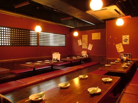 当店は福生駅からすぐの場所にあり、焼き鳥をメインに料理を提供しています。店内は落ち着いた雰囲気で、赤い壁と木のテーブルが温かみを感じさせます。広々とした空間で、グループでの利用にも最適です。感染症対策にも力を入れており、入店時には検温と手指消毒をお願いしています。快適で安全な環境を整え、お客様をお迎えしています。