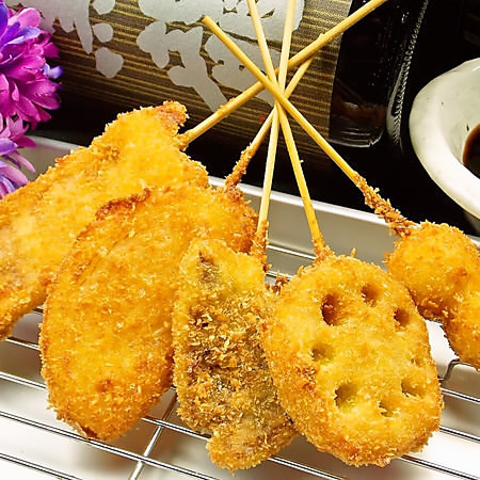 旬の素材・新鮮な海鮮・こだわり食材を使用して、店内でカラッと揚げる串カツ。揚げ立てサックサクな状態でご提供いたします。シンプルだからこそ美味しい、本場大阪の料理人による腕前の見せ所!盛り合わせは5種:540円(税込)、10種:1000円(税込)でご提供いたします☆