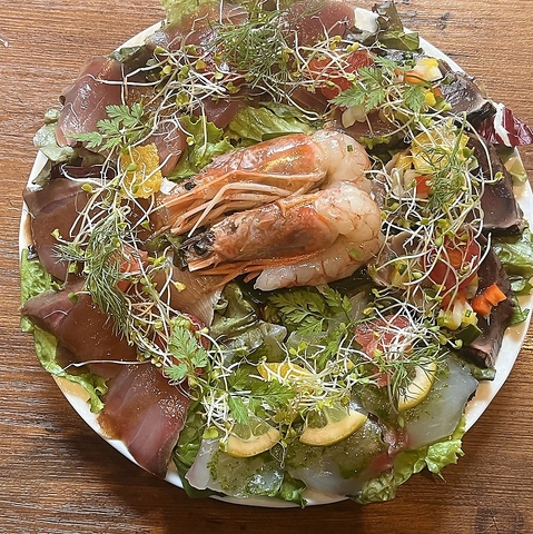 名古屋の中央卸売市場から毎朝直送!新鮮な海の幸を使った“カルパッチョ”はいかがですか?その日おススメの魚介使った“カルパッチョ”には6種の鮮魚を使用◎贅沢な内容ながらも、お値段は980円と高コスパ!お楽しみいただく内容は季節によって変わります。その時季ならではの旬魚を使った逸品は、必食の美味しさです◎
