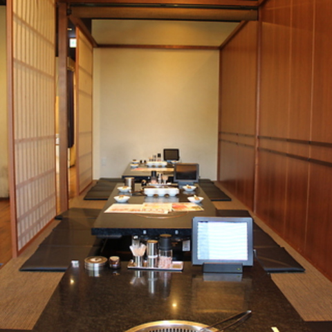 ファミリーに人気の掘りごたつ。お子様連れでも安心です。美味しいお肉を、心ゆくまでどうぞ!…こちらも人数に応じて仕切ることができます。25名以上収納可!