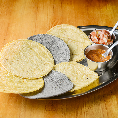 白、黄、青トウモロコシのトルティーヤセット(サルサ付き)