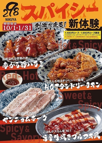 | 平均予算 | 焼肉食べ放題1100円(税込)~ 和牛食べ放題3999円~ |