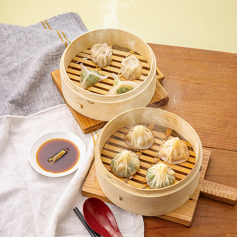 台湾小龍包の小籠包、焼売は全て手包みで提供しております。蒸し立て熱々の点心をお楽しみください!