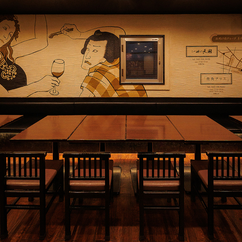 お一人様やカップルに人気のカウンター席は9席ご用意しております。当店では、日欧酒場の名にふさわしく、和と洋の料理だけでなく、お酒も和洋幅広く取り揃えております。お客様の気分に合わせたお酒のご提案もさせていただきますので、お気軽にお申し付けください♪ちょい飲み、サク飲み利用も大歓迎です!