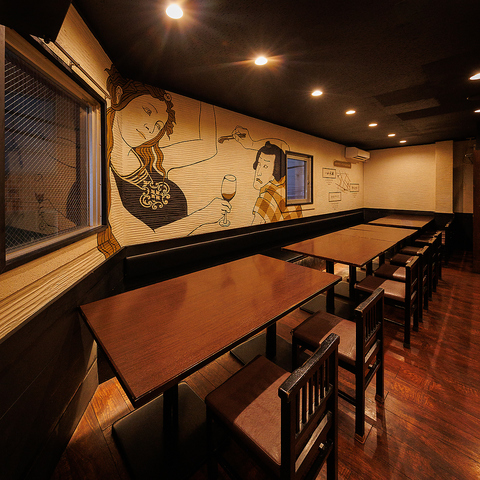 8名様までご利用いただけるテーブル席は、広々とした空間でゆったりとお過ごしいただけます。落ち着きのあるお洒落な店内は、女子会やママ会、会社のご宴会など様々なシーンに最適。和食も洋食も楽しめる豊富なメニューをご用意しておりますので、お好みのお料理と共に、こだわりのお酒も心ゆくまでご堪能ください。