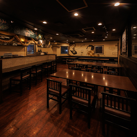 当店は全55席のテーブル席をご用意しており、大型宴会から少人数の飲み会まで幅広く対応可能です。友人同士の気軽な集まりや会社帰りの一杯にもぴったりの空間です。貸切は30名様から承っており、プライベートなパーティーやイベントにも最適です。ゆったりとした席配置で、楽しい時間を心ゆくまでお過ごしください。