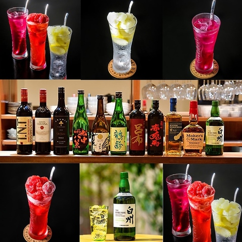 【女子会におすすめ】人気のオリジナルドリンク『食べるレモンサワー』『フレッシュ苺のサワー』『遠賀の赤しそサワー』♪ノンアルコール・微アルコールでの提供も可能です♪店主が目利きした厳選焼酎・ワイン・日本酒が飲めるお店です