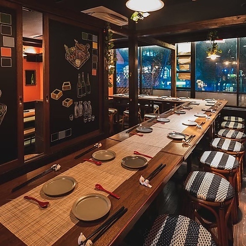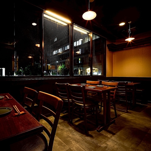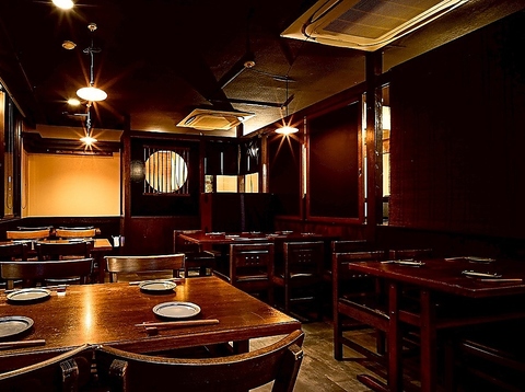 広々した店内はこだわりの照明が壁や床に反射して温かみのある空間となっています!4名様テーブル席やカウンター席など、様々なシーンでお使いいただけます。テーブルレイアウトなども変更可能なので大小宴会にどうぞ!