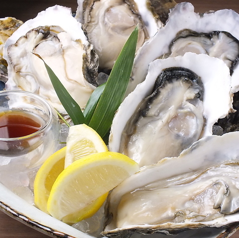音波では季節によってご用意している牡蠣が変わります。岩牡蠣『夏牡蠣』5月~9月、真牡蠣『冬牡蠣』 10月~4月。旬の牡蠣の味を心ゆくまでお楽しみください。