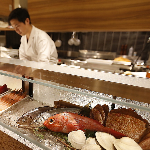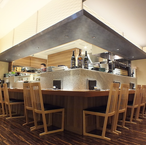 ライブ感溢れるオープンキッチンカウンターは見物です。職人の匠の技を間近でご覧下さい。