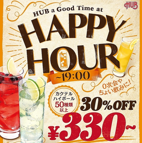 16時~19時は毎日お得なハッピーアワー!!カクテル30%OFF!!50種類以上の豊富なドリンクをご用意しております。フードとドリンクセットでお得になるハッピーアワーセットもご用意しております!ぜひ当店をご利用くださいませ!