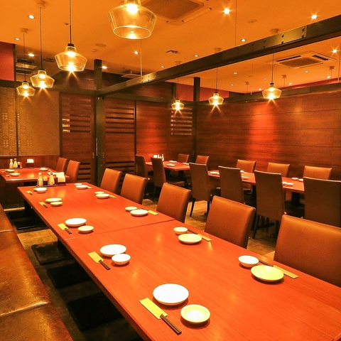 大人数での宴会に最適な居酒屋として、広々としたテーブル席をご用意。飲み放題付きコースも充実しており、個室の利用も可能です。設備や環境が整っているので、幹事様が安心してご予約いただけます。