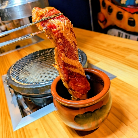 【新登場】圧巻の壺漬けドラゴンカルビ!満足度120%越えの激うまドラゴンカルビはプレミアムコースと和牛コースからご注文いただけます★もちろん単品注文もOK★この味、そして質量!一度食べたらやめられない止まらない!でも安心してください。食べ放題でご注文いただけます!!一生分のドラゴンカルビを胃袋にぶち込みに来てください!