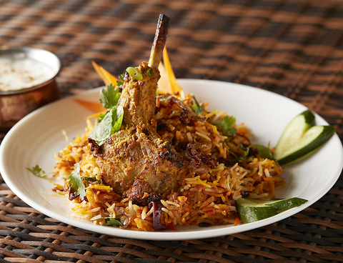 世界三大炊き込みご飯の1つとも言われインドや周辺国で絶大な人気を誇るビリヤニ。インドの長粒米バスマティライスとスパイスとヨーグルトなどで味付けした具材とグレービー(カレー)を一緒に丁寧に蒸しあげています。