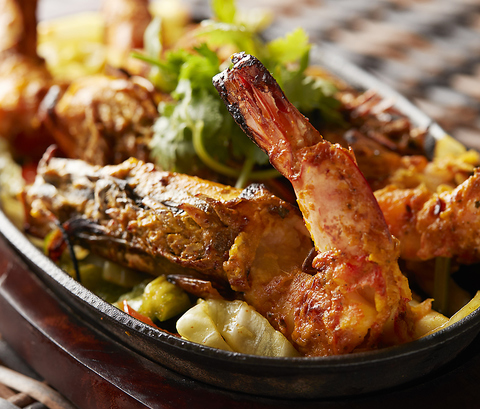 数十種のスパイスをブレンドし、自家製ヨーグルトソースに漬け込んだインド式バーベキューは、熟練のタンドールシェフが炭火で丁寧に焼き上げる当店自慢の一品。スパイシーな味わいでお酒も進みます。インド国内シェアNo.1のインドワインと一緒にお楽しみください。