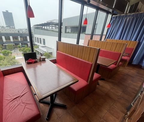 赤い椅子と木目調のテーブルは居心地がよく、まったり過ごせる雰囲気◎それに加え、暖かみのある間接照明がオレンジ色の光を与えてショッピングモールとは思えない和やかな空間を演出!美味しいお食事を楽しみながらゆったりお過ごしください。